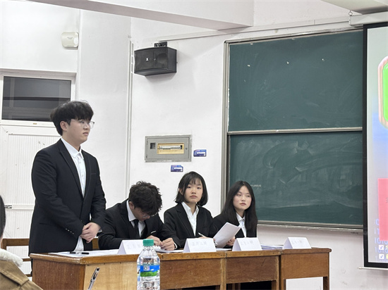 比赛伊始,正反双方辩手身着整齐服装,交叉入场并郑重握手,互致鼓励,充分彰显“友谊第一,比赛第二”的竞技风范与辩论礼仪。主席宣布开赛后,立论、质询、攻辩、自由辩论、总结陈词五个环节层层递进、扣人心弦。