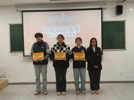 为夯实学生党的理论知识基础,强化理想信念教育和爱党爱国教育,营造以赛促学、比学赶超的良好学习氛围,yl23455永利集团“医心向党”九医红色学习小组于12月10日星期三下午3点,在研究生楼330教室组织举办了党的知识竞赛决赛。递交入党申请书的同学和入党积极分子积极报名参加本次活动,参赛选手同台竞技、展现风采。