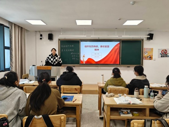 口腔A2411班团支书舒艺在教学楼B504教室,通过影像回顾与主题研讨相结合的方式开展学习。短视频生动呈现了医学先辈在不同历史时期的奉献身影,随后的研讨则引导同学们将先烈精神与自身职业规划相联结,促使他们深入思考如何把爱国情怀转化为践行“医者仁心”的专业担当,用实际行动诠释爱国担当。