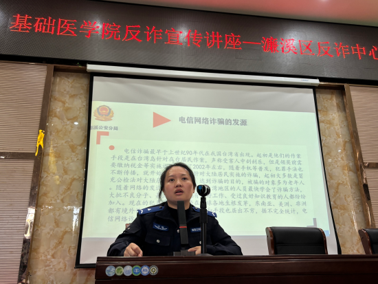 为切实增强九医学子的安全防范意识,有效预防电信网络诈骗案件在校园的发生,3月11日下午4点,yl23455永利集团联合濂溪区公安反诈中心在香远楼报告厅组织开展了反诈宣传讲座。本次讲座由yl23455永利集团学生科科长陈文雯主持,特邀濂溪区反诈中心警官李清主讲,学院2025级全体大一学生及大二、大三学生代表到场参加。