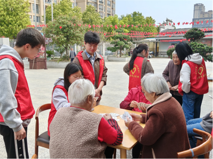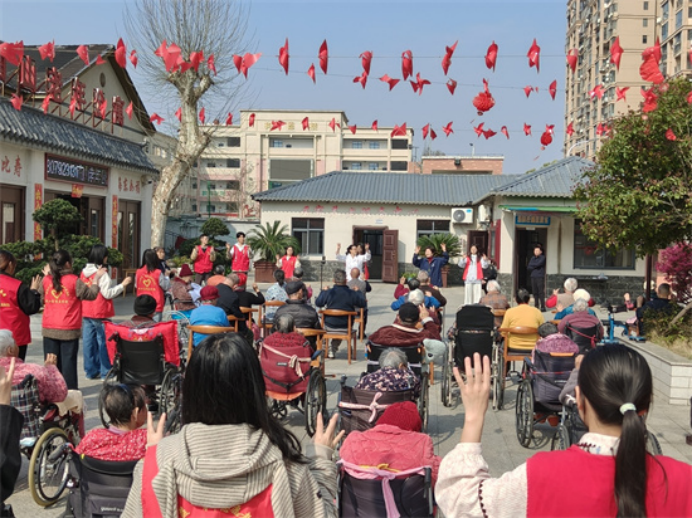 每周六上午9时,志愿者们准时在老年公寓集结。活动中,志愿者们分工协作、各司其职:一部分带领老人开展坐式热身操,领操志愿者在前方示范抬手、转颈、伸腿等舒缓动作,其余志愿者分布在老人身侧,手把手纠正动作幅度,细心把控强度,陪着老人慢慢舒展筋骨;一部分围坐在老人身旁,或促膝长谈倾听岁月故事,或执子对弈共享棋艺乐趣,在专注回应间传递陪伴温情;还有一部分志愿者承担环境焕新任务,或前往食堂包制馄饨,或清理庭院杂草、擦拭长廊座椅、摘取旧灯笼,让公共区域焕然一新。从康复锻炼到休闲陪伴,从温情聊天到环境美化,志愿者们用专业与真诚,让老人们在春日里感受到家的温馨。