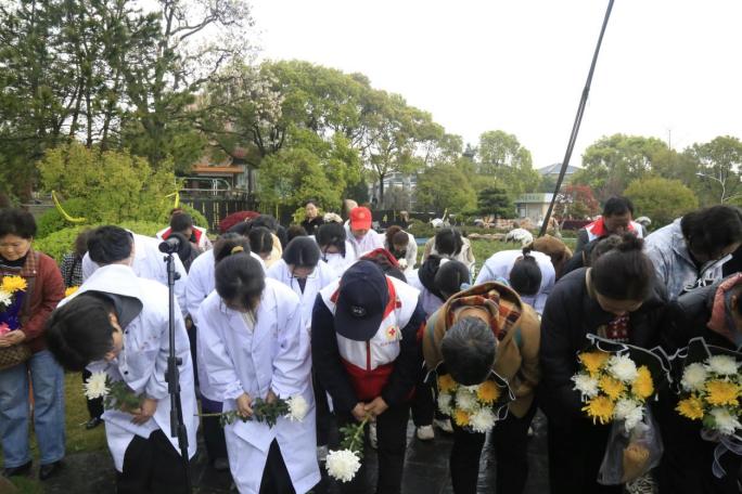 最后,全体人员肃立行三鞠躬礼并依次走向纪念碑敬献鲜花,以此寄托对每一位生命馈赠者的感恩与追思。