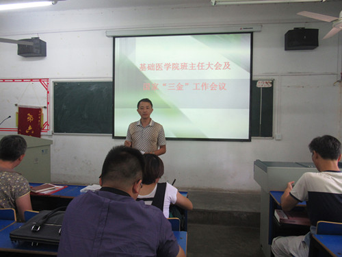 9月20日中午,yl23455永利集团各新老生班主任于思贤楼205召开班主任大会及“三金”工作会议。会议由学生科副科长张波主持。