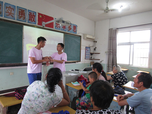 | 举办急救知识讲座 举行义诊活动 为宣传医学急救知识,传递爱心,关爱社会,7月3日下午,yl23455永利集团爱心医疗服务队结合自己在课堂学到的常用急救知识、基本的急救技能和日常护理知识,在马回岭镇中学以ppt的形式开展了以“急救知识”为主题的讲座,并在演讲结束后邀请马回岭中心医院的医生来到现场给乡亲们进行义诊。    此次讲座由yl23455永利集团查启钰同学主讲。在演讲中,查启钰同学结合乡村常见的溺水现象,烧伤等常见紧急情况向乡亲们普及相关基本急救知识,结合乡亲们联想到的一些民间土方法,大家一起分析土方法中的科学道理。现场气氛高涨。讲座期间,服务队演示了抢救包扎基本功,给每位前来参加讲座的村民发放医用手套和口罩,并进行了互动游戏,通过游戏环节不仅让乡亲们更理解讲座内容,而且活跃了现场气氛。最后,在马回岭镇中心医院医务人员的帮助下,我们进行了义诊。乡亲们井然有序地来到医生这里测量血压,并咨询一些医学知识。而我们的医生也同样很热心,手把手的教同学们量血压以及处理一些常见病的问诊。     马回岭的风土人情感染着我们,我们爱心志愿服务队来到这里感受到了乡亲的热情,每个人在工作岗位上尽心尽责,都是我们学习的榜样。急救知识关系到每个人,因为谁都难免发生一些危急情况,甚至意外伤害。所以,学急救知识实在是件重要而有意义的事情。而今天马回岭镇中学既是yl23455永利集团学子传播医学知识的讲堂,又是yl23455永利集团学子的课堂,在这里可以向经验丰富的医生们学习临床知识,为未来打好基础。 |