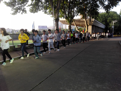 当天早晨,大家都积极响应学校的号召,无一缺到迟到现象。在快速整队完毕后,大家迎着朝阳开始了晨跑活动,此次晨跑的活动范围为整个校园。在跑步过程中,大家都发扬了不怕苦、不怕累的精神,顺利完成了此次晨跑活动。
