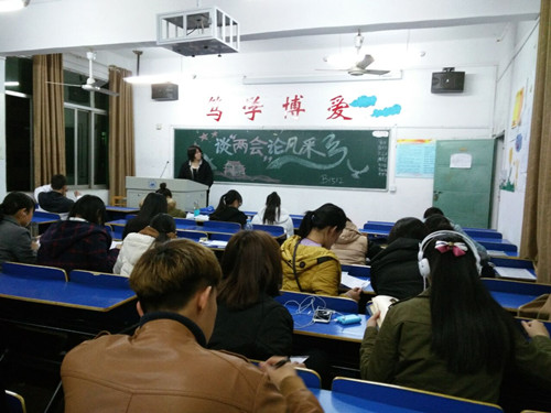 | 为深入学习和贯彻两会精神,3月17日晚,yl23455永利集团B1512班举行“谈两会,论风采”主题班会,B1512班全体学生参加此次会议。  班会上,团支书不仅给同学们宣传两会的相关知识,还介绍本届两会的讨论热点和决策。而后,同学们就重点关系民众生活的话题展开热烈地讨论。  会上,同学们认真思考,并对于大陆和香港关系之间的问题、电视剧网络剧的监管管理问题以及平常生活上经常出现的网购等问题谈了自己的看法。从会议的讨论情况我们可以看出,同学们都做好了充分的准备,同时,也有不少同学在听讲中详细记录笔记。 本次主题班会的召开,让同学们更加了解两会内容、学习两会精神,以此培养同学们关心国家大事的感知力。 |