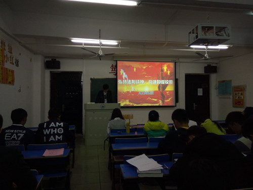 活动中,yl23455永利集团各班班长和团支书共同组织各班同学举行“弘扬法制社会、构建和谐校园”主题班会,班会上班长向大家介绍了有关法制安全问题的普遍性,以及同学们如何利用法律手段进行自保等方面知识。此后,同学们积极讨论并踊跃上台发言,与大家分享自己身边事,针对各种社会法制热点问题各抒己见。