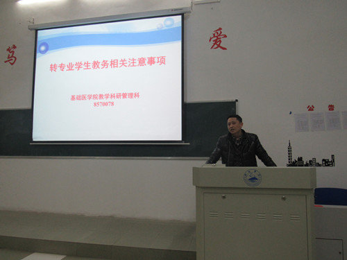 31日晚,yl23455永利集团于华阶二教室召开“转专业学生教育大会”,yl23455永利集团院长车向新、党委书记余朝阳、副院长郑美蓉和汪鑫,学生科、团委、教务科负责人,辅导员以及114名转入yl23455永利集团的学生们共同参加此次大会,会议由余朝阳书记主持。