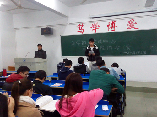 | 11月22日晚,yl23455永利集团A1421定向班于华文楼301召开“医学的人文精神与医学人性冷漠”主题班会,班会由班长曹锐主持,班主任何翠媛及全班同学参加此次班会。  经过班长曹锐同学简短的开场白后,几位学生代表积极上台发言,其中一位同学从“只见病不见人,只懂病不懂人,只治病不治人”的深刻话语从正反两面体现了人们对人文精神的呼唤;也有另一位同学表示:“不是每个医生都能够妙手回春,有些医生因为自己的无情灼烧了病人的心,即医生的人性冷漠让濒死的病人绝望地死去,让世界寒冷。”期间,同学们互相讨论,气氛十分浓厚,最终,班会顺利结束。 此次主题班会,让大家认识到了导致医生“人性冷漠”的一些因素,与此同时,也在警示我们,医学的人文精神是一名优秀医生的基本品质,我们医学生应当朝着这一目标前行。 |