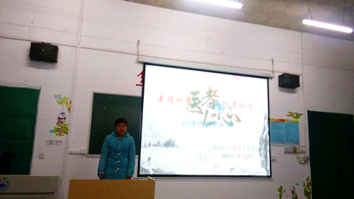 | 11月17日晚,yl23455永利集团于文阶五教室举行“医德双馨,仁者仁心”PPT演讲比赛决赛,学生科科长何翠媛、副科长张波、辅导员以及担任评委的学生会部长出席此次活动,六位决赛选手以及入党积极分子培训班全体学员参加此次活动。   在此次决赛中,六位决赛选手都做了精心的准备,都拿出了最好的精神风貌,展现了个人的特色和魅力,相比他们初赛时的表现可谓更加从容、自然。他们从医德、医术两方面阐述了自己的见解,阐述了“大医精诚”的精髓意义,并作了热情澎湃的诤诤誓言。健康所系,性命相托是社会赋予广大医务工作者和医学生的期望和重托,尽管医途遥远又坎坷,但是每个人在最后都道出了学子们的心声:将不忘初心坚定地走在选择从医这条道路上。   学生科科长何翠媛对此次决赛的六位选手作出了点评与总结,并对在场的各位同学提出要学会奉献、担当以及树立崇高的理想信念这三点建议,并且预祝各位同学在医途中可以有一个美好的未来。  最后,老师们上台给获奖选手们进行颁奖,并合影留恋,此次PPT演讲比赛圆满结束。 |