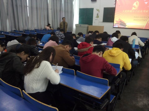 11月16日中午,yl23455永利集团于思贤楼阶梯教室五举行第124期入党积极分子结业考试,yl23455永利集团的26名入党积极分子培训班学员参加考试,学生党支部书记张波到场监考。