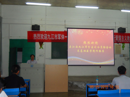 5月25日晚,yl23455永利集团在思贤楼文阶五教室为全体师生作爱国主义教育讲座并参加yl23455永利集团“红五月”大骨干培训班结业典礼。邀请原江西九江军分区司令员徐金林同志为更生作专题报告。九江市军区休一所张副所长,南湖社区服务站郭主任,yl23455永利集团党委书记余朝阳、团委书记淦明南等师生140余人参加此次活动。