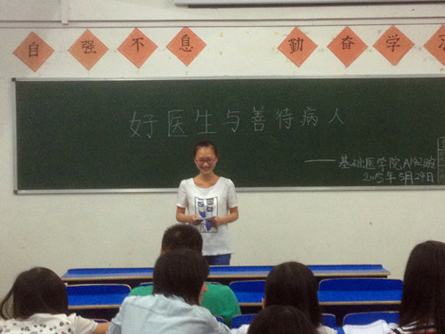 三是召开“好医生与善待病人”主题班会。5月24日晚,yl23455永利集团A1421班于华文楼301围绕“好医生与善待病人”的话题召开了主题班会。