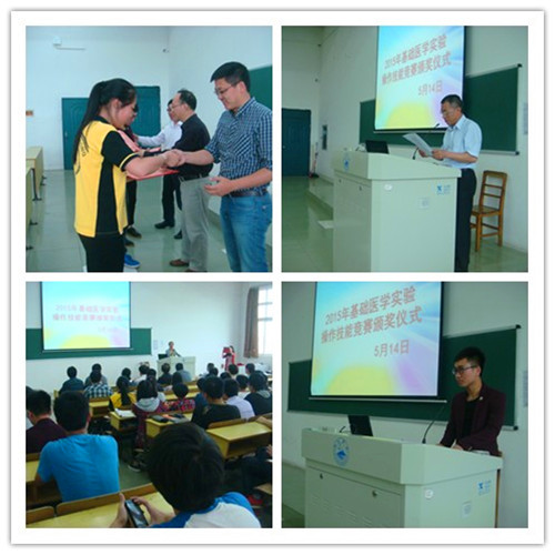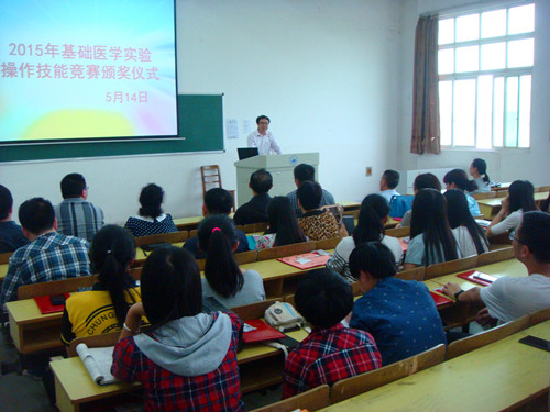 5月14日下午,yl23455永利集团于华阶二举行首届医学实验操作技能竞赛颁奖仪式,出yl23455永利集团院长车向新、党委书记余朝阳、副院长郑美蓉、副院长汪鑫,校实验中心实践教学管理科科长郭松,学生科、基础实验中心的老师席仪式。2014届临床本科的同学们参加了此次颁奖仪式。