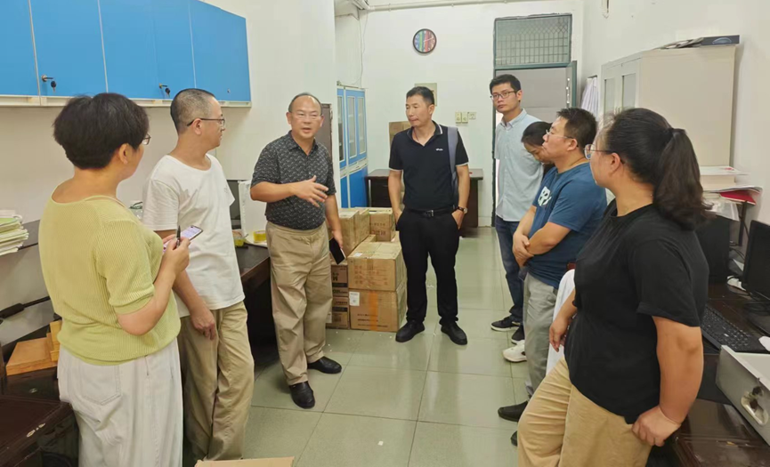 为推进医学院实验室搬迁工作安全有序进行,医学院成立领导小组,由院领导联系教研室和各实验室协调搬迁工作。2023年9月7日下午,医学院院长车向新教授来到形态实验室检查工作。车院长与组织胚胎学与遗传学教研室老师及形态学实验室工作人员进行深入沟通,就实验室搬迁工作进行动员和督促,了解和解决实验室搬迁的前期准备工作中遇到的困难。