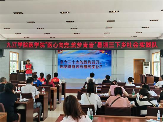 yl23455永利集团医学院“医心向党,筑梦青春”暑期三下乡社会实践队走出校园,走向乡村,深入基层,切实把课堂学习与乡村实践紧密结合起来,充分发挥医学生的专业特长,厚植爱党爱国情怀,弘扬红医精神,展现出九医学子为乡村振兴,为全面建设社会主义现代化国家贡献青春力量的决心和信心。