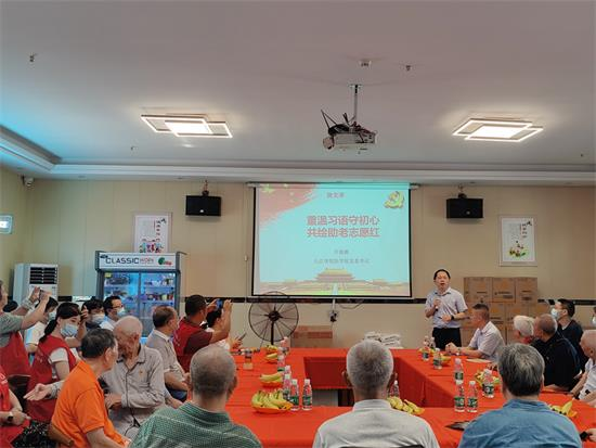 医学院党委书记许晓源以“重温习语守初心,共绘助老志愿红”为微党课主题,带领四个党支部集中学习了习近平总书记关于志愿服务和养老助老的相关指导思想。他讲到,广大青年党员要积极投身于志愿服务活动中,将志愿精神发扬光大,在尊老爱幼上尽心尽力,争取做一名优秀的党员。