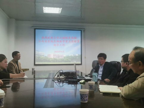 4月3日上午,yl23455永利集团党委委员、副校长王万山在医学院党政负责人陪同下到江西省系统生物医学重点实验室调研指导工作,并召开座谈会,实验室成员及医学院教师代表参加。