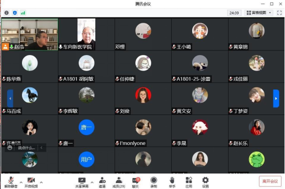 11月23日,医学院组织召开2018级预防医学专业本科毕业论文(设计)开题答辩会,受疫情影响,本次开题答辩会在线上举行。全体论文指导教师和2018级预防医学专业36名学生分4组展开论文开题答辩,医学院院长车向新、党委书记许晓源、副院长向维聂、熊建军等院领导分别参与并指导各小组开题答辩。