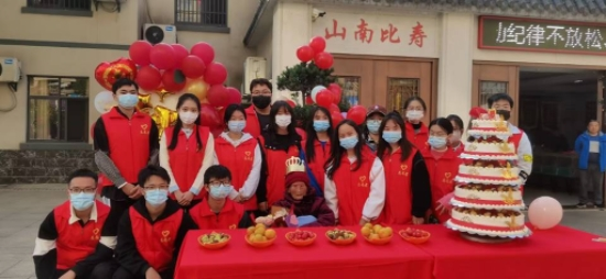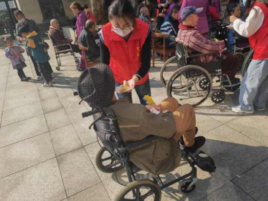 此次活动恰逢一位老奶奶102岁诞辰。志愿者们早早地来到公寓,协助工作人员布置生日会场。欢乐的生日歌萦绕在公寓上空,志愿者们一边维持现场秩序,一边悉心照顾老人,共同为老奶奶送去了生日祝福,并与奶奶合照留念。