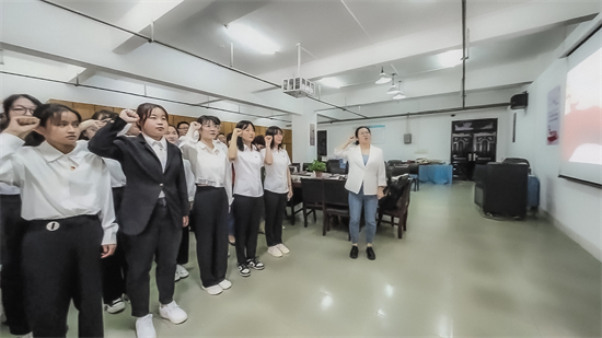 仪式上,新党员翁月柯代表全体预备党员发言,在党旗下郑重承诺:“我们要把入党誓词“终生铭记,身体力行”,发挥模范带头作用,积极创建文明宿舍与文明课堂,以饱满的热情积极组织和参加各种校园文化活动及各种社会实践活动、科技活动和青年志愿者活动等,努力成为学生工作的桥头堡和排头兵。”