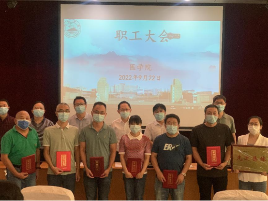 会上,许晓源对医学院近期引进的博士和老师向全院教职工进行了介绍,并表示热烈欢迎。同时对医学院2021年度取得的成果进行了肯定, 对在2021年度获奖的先进集体、优秀教师、优秀教育工作者及优秀班主任、辅导员进行了颁奖。许晓源向全院教职工传达了省高校年度综合考核满意度调查要求,动员全院教职工积极参与,认真对待,并强调了考核意义的重大以及高校未来的持续发展。