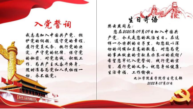 贺卡虽小,却是党组织与党员间的“连心桥”,满载着党组织对党员的关心和希望,贺卡上不仅印有入党誓词和对党员同志政治生日的暖暖祝福语,还记录着党员的入党时间,希望收到贺卡的每一名党员同志能牢记誓词,进一步强化身份意识、宗旨意识和责任意识,立足岗位、担当作为、矢志拼搏,永葆共产党员先进本色,切实发挥先锋模范作用,从而增强党组织的创造力、凝聚力、战斗力。