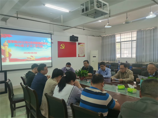 4月28日下午,医学院党委在华文楼105会议室召开了4月份党委理论学习中心组(扩大)学习会,党委委员、支部书记、科室负责人、教研室主任、专职组织员参加了会议。会议由医学院党委书记许晓源主持。