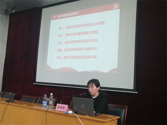 任丹阳同志围绕“学百年党史,争做合格党员”这一主题,逐一讲解了中国共产党的诞生及其启示,从中共一大的召开到“学史明理、学史增信、学史崇德、学史力行”展开叙述,她带领大家重温入党誓词,围绕学党史的意义,当代中国青年应当如何作为,争做合格党员展开了讲解。她指出:后浪奔涌,未来可期,人的一生只有一次青春,现在,青春是用来奋斗的,将来青春是用来回忆的。