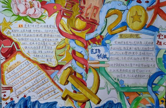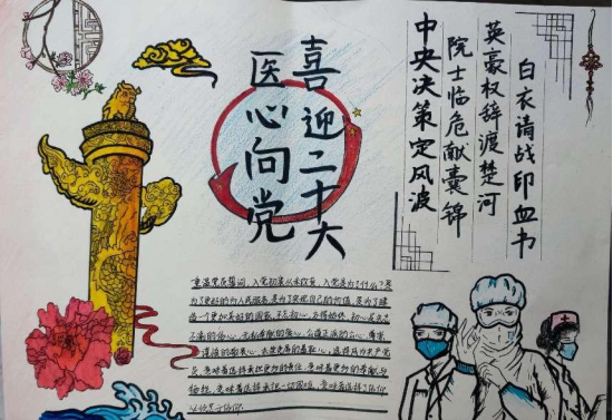为了全面学习贯彻省第十四次党代会精神、市第十二次党代会精神,不断加强医学生的思想政治教育,喜迎党的二十大的召开,在医学院学习部的组织下,3月2日至3月8日,医学院顺利开展了“医心向党,喜迎二十大”手抄报比赛。
