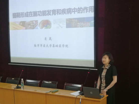 肖岚教授的讲座名称是促髓鞘再生:脑疾病治疗新靶标。以中枢神经系统的髓鞘为研究对象,应用多种动物模型从多角度证实髓鞘对神经元细胞功能的调控作用,揭示了其在部分脑疾病发生中的作用,为治疗复杂的中枢神经系统疾病提供了新的视角。