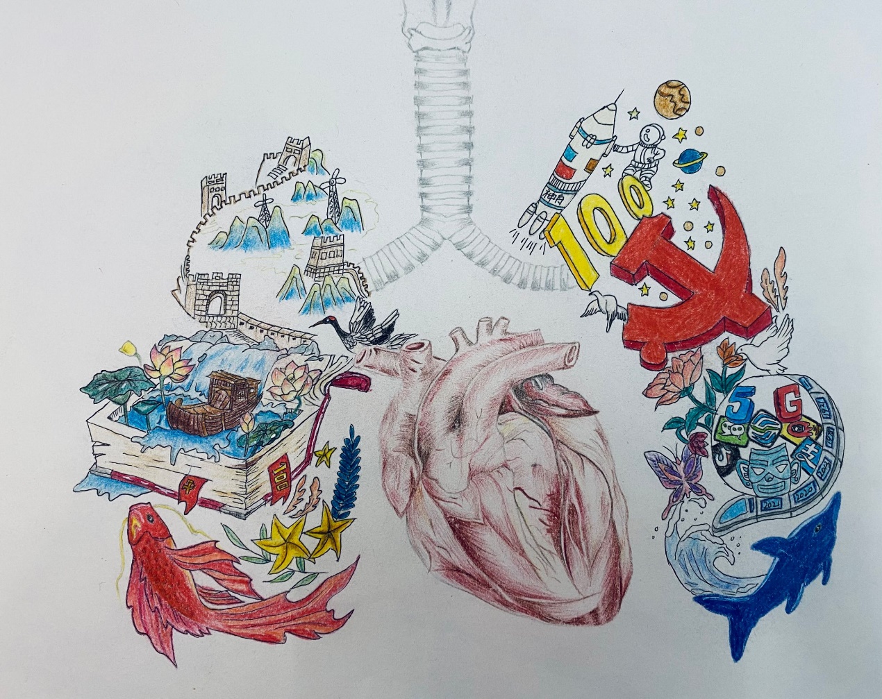 活动前期,学习部到各个班级将活动要求及细节进行宣传,积极引导并鼓励同学们参与此次活动。在绘画作品中同学们充分发挥自身想象,不拘泥于特定框架,一幅幅解剖图与红色元素相得益彰。每一位参赛选手将浓浓的爱国情结合到绘画作品中。其中《以初心,致不凡》将人体与长城相融合,结构中扑通扑通的心脏在诉说着“我心向党”的真挚情感。比赛作品由解剖室老师们进行评选,各位老师根据作品的科学性、准确性以及与红色元素的融合性,分别评选出了一、二、三等奖。A2041郝佳诗《以初心,致不凡》和A2012吴菁《虚实》荣获一等奖,A2015谢金林《苦尽“肝”来》和A2031章威婷《胸椎T6上面观&庆祝党成立100周年》荣获二等奖,A1914王云超《敬畏生命》、A2013龙子玉《股骨》和A1916刘嘉欣《以党为根,心上开花》荣获三等奖。