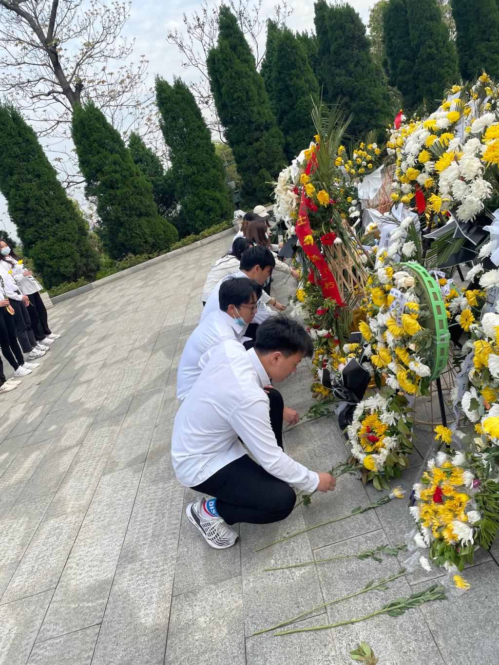 4月10日,为了缅怀革命先烈,弘扬民族精神,加强党史教育,yl23455永利集团学生党支部组织学生党员及入党积极分子赴南山公园烈士陵园进行祭扫烈士墓活动,表达对革命先烈的追思。