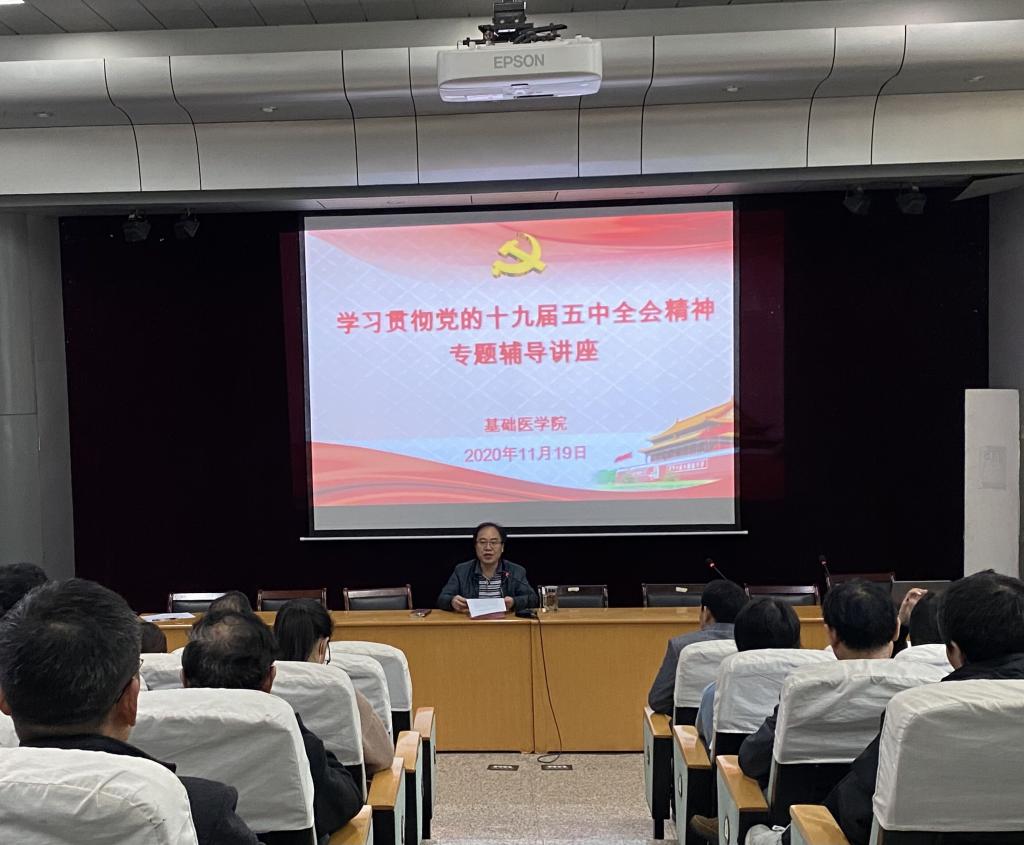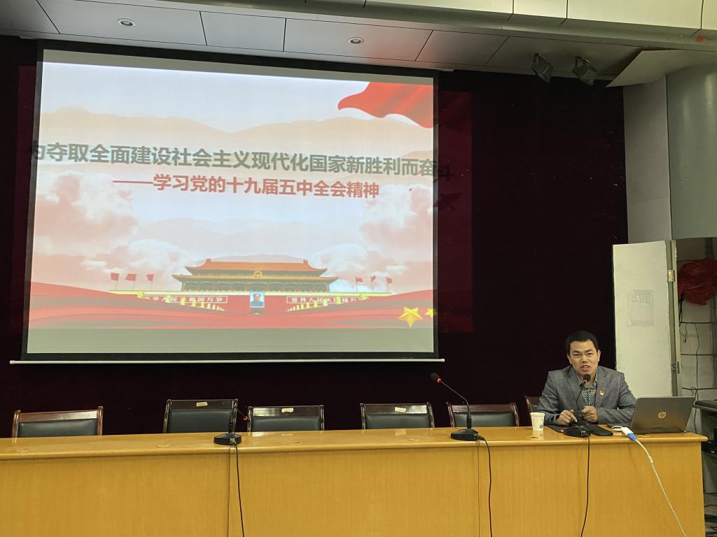 赵文以《为全面建设社会主义现代化国家而努力奋斗——学习贯彻党的十九届五中全会精神》为题,结合国内国际形势、世界新冠肺炎疫情防控局势,用通俗易懂、生动形象的语言介绍了“重大意义:变局下中国之治”、“靶向发力:决胜全面建成小康社会”、“‘四个全面’新布局:全面建设社会主义现代化国家”、“十九届五中全会的重大意义”等4个方面内容,使全院师生受益匪浅。