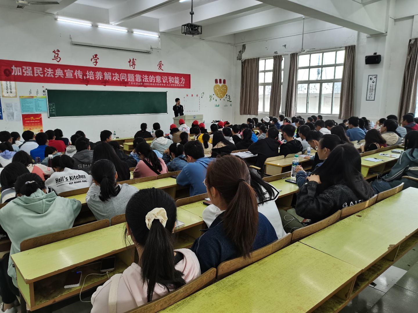 10月24日,yl23455永利集团联合三里街派出所、九江新航志愿者协会在华阶二开展了法律知识宣传讲座,此次讲座邀请到了三里街派出所民警胡宝来担任主讲人。