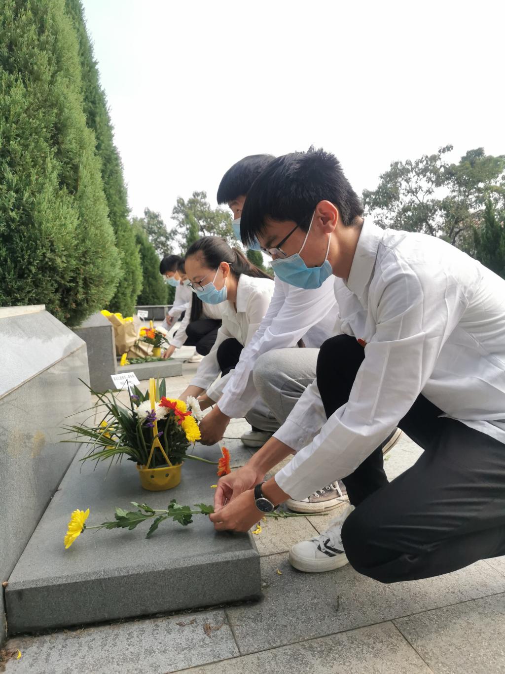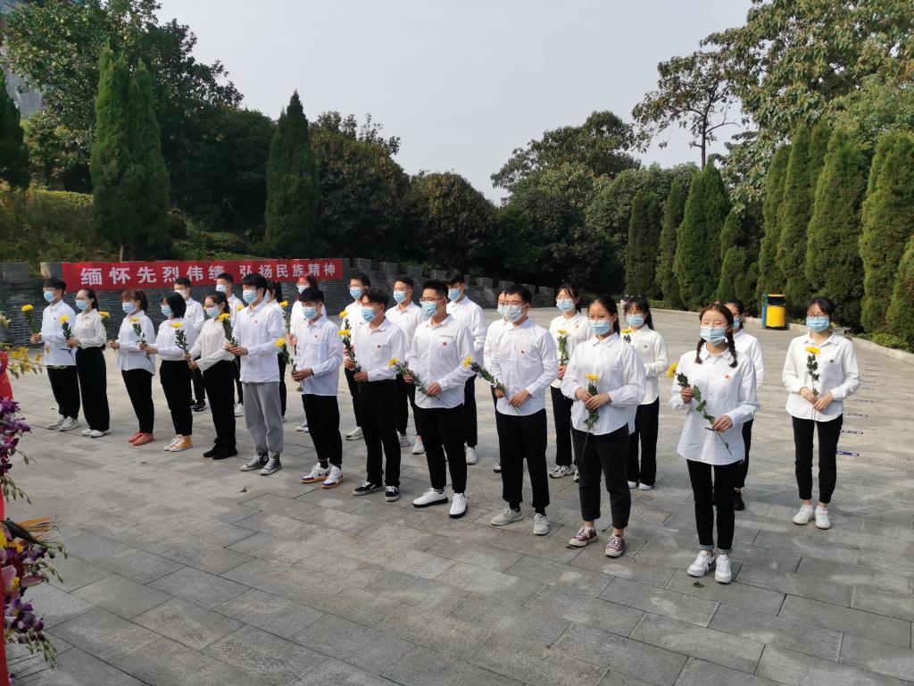 10月1日,为弘扬爱国主义精神,深切缅怀革命先烈们为实现中华民族伟大复兴事业而英勇献身的革命精神并瞻仰他们的丰功伟绩,yl23455永利集团学生代表来到南山公园为革命烈士们献花。