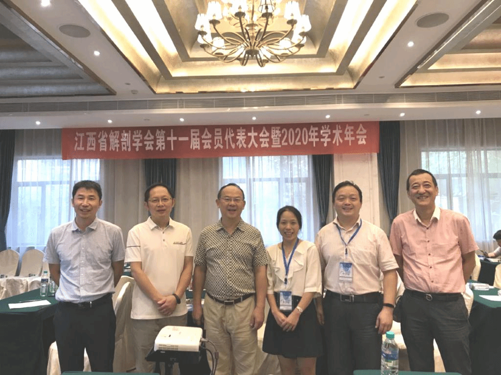 江西省解剖学会第十一届会员代表大会暨2020年学术年会于2020年8月14日~16日在南昌市召开。参加本次年会的成员主要来自江西省各高校的从事解剖学和组织胚胎学的一线教学科研人员,还有与解剖和胚胎学相关的省内临床医务工作者,共计90余人参加。本次年会还邀请了江苏张家港市德仁科教设备有限公司、山东数字人科技有限公司等国内从事医学形态学研发的知名公司近10余家参与,体现了本专业年会学术与产学研相结合新模式。我院车向新院长、许晓源副院长、傅文学主任、徐健老师和陈雄林老师教师应邀参加本次年会。
