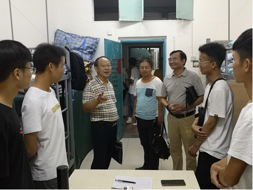 为进一步做好新生入学教育工作,帮助他们更快的适应大学生活,9月4日晚,yl23455永利集团院长车向新、党委书记余朝阳、党委委员傅文学带领班主任、辅导员等一行人来到学生宿舍,亲切慰问2019级新生。