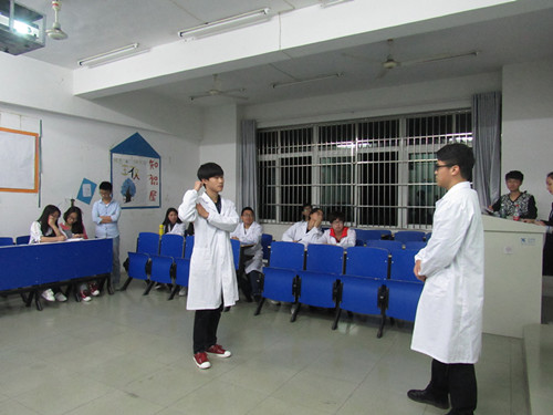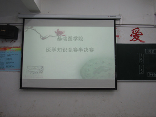 | 5月8日晚,基础学院知识竞赛半决赛在华文楼301、302举行。本次活动由学习部组织,学生科姚中平老师及部分学生会干事受邀担任评委,晋级班级选手们参与此次活动。   比赛开始,由主持人宣读比赛规则,选手准备完毕后进行比赛。第一环节为你问我答,为选择题。第二环节为心有灵犀,由每组派两人来做动作猜医学词语。第三环节为各抒己见,现场看视频,由每组派一人发表自己对视频的看法。第四环节终极PK,有三种类型题,每队可挑选一种题型作答。然后由评委给分,并就选手们的表现给出了自己的评价和建议。最后由主持人宣读比赛结果。比赛过程中较为激烈,同学们都能充分利用所学知识,满怀热情投入到比赛中去,营造了一个富有医学氛围的比赛。    本次比赛不仅让同学们在欢乐中学习到医学知识,而且让同学们们体会到互帮互助的团队精神,为今后大家在社会这个大家庭能更好地生活打下基础。 |