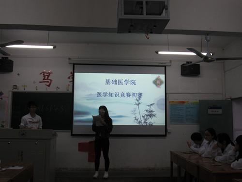 | 为了检查同学们的医学知识4月26日晚,yl23455永利集团在华文楼605到608教室举行医学知识竞赛初赛。yl23455永利集团大一各班学生代表参加此次比赛。    比赛分为“必答题、抢答题、心有灵犀和各抒己见”四个环节,每个比赛教室分别有三组代表队进行比赛,并且有三名裁判和一个主持人。其中,最激烈的一个环节当属抢答题环节,同学们通过手机拨打主持人的手机进行抢答,答对了加分,答错了则扣分。这不仅要求参赛队员要有丰富的医学知识,而且要有敏捷的思维能力。而心有灵犀则由一位成员用肢体语言表达给出的名词,另一名成员猜测,这个环节旨在考验同学们的理解能力和合作能力。最后,主持人让参赛成员们观看了两则关于医患关系的案例,再由各组派出一名队员抒发他们组的意见和看法。   这次比赛,让同学们丰富了医学知识和发展了思维能力,并且对医学有了更深层次的了解。 |