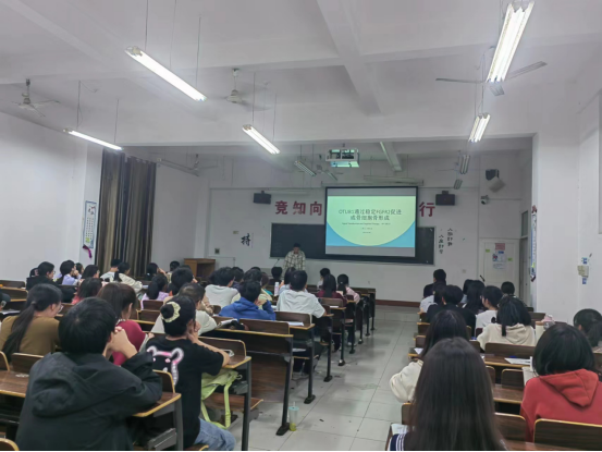 李兴暖博士指导的黄龙圣和桂鑫海两位优秀学生精心准备,深入研究各自文献课题,选出高质量文献进行阅读汇报,展现出扎实的专业知识和出色的表达能力。已经考上南京医科大学研究生的黄龙圣同学首先进行了“OTUB1通过稳定FGFR2促进成骨细胞骨形成”的文献汇报。他以清晰的逻辑和深入浅出的讲解,将文献中的核心内容和研究成果一一呈现,不仅阐述了该领域的研究现状和热点问题,还提出了自己的见解和思考,引发了在场师生的热烈讨论和深入思考。随后,桂鑫海同学分享了“FAK通过RhoA-ROCK通路调节细胞粘附性增殖”的文献研究成果,以独到的视角和详细的分析,吸引了大家的注意力,通过对相关文献的梳理和总结,展现了该领域的发展趋势和潜在的研究方向,为在场的师生提供了新的启发和灵感。