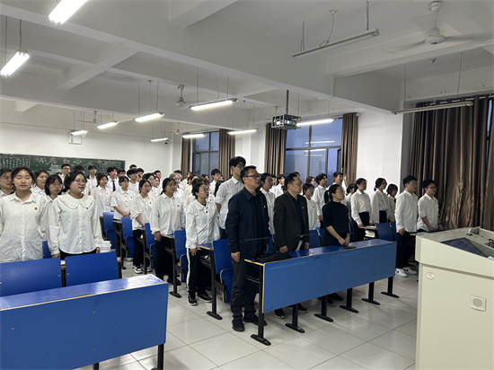 仪式伊始,全体人员起立奏唱国歌与红歌《没有共产党就没有新中国》,振奋人心的旋律在教室内回响。许晓源首先在会上进行了动员讲话,他激励大家要牢记入党积极分子身份,深入学习贯彻习近平新时代中国特色社会主义思想,认真学习本次培训教育内容,严格执行学习纪律,勤于思考,扎实收获,学以致用。