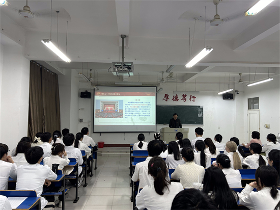 开班仪式结束后,许晓源与刘频健分别为学员们进行了专题党课辅导。许晓源以《奋进新时代,建功新九医——学习贯彻党的二十大精神》为主题,从十八大以来在习近平总书记领导下,中国所取得的伟大变革和历史成就、开辟马克思主义中国化时代化新境界、新时代新征程中国共产党的使命任务、新时代新征程的重要部署和战略举措等四个方面展详细解读了党的二十大精神;并号召同学们做有理想、敢担当、能吃苦、肯奋斗的新时代青年,在国家需要的时候能够挺身而出,贡献自己的青春力量,建功新九医。刘频健则围绕《弘扬五四精神,做新时代有为青年》这一主题展详细讲述了五四精神的起源、五四精神的具体内涵及其新时代化的观点,他激励全体同学们,不仅要积极践行中国特色社会主义核心价值观,更要深刻领悟并将个人的命运紧密交织于国家民族的伟大复兴之中,在不懈奋斗与砥砺前行的过程中挥洒青春热血,以昂扬的姿态去谱写出属于每个人生阶段的辉煌篇章。