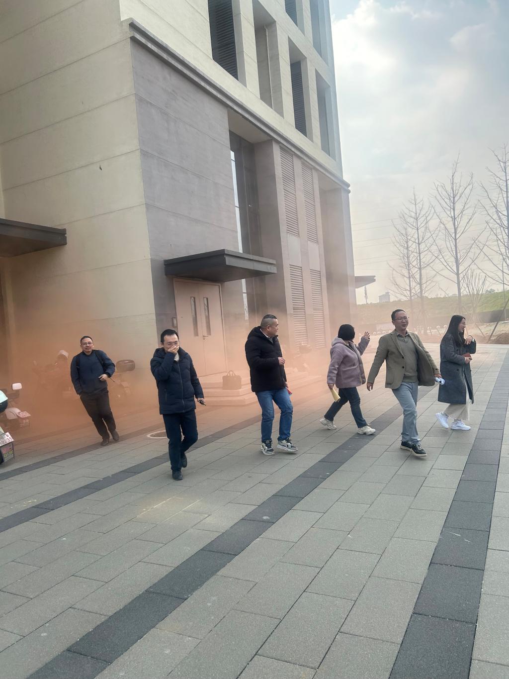课上,大家认真听讲仔细记录,了解了不同性质的突发火灾应该如何应对,灵活运用冷却灭火法、隔离法、窒息法、抑制法四大灭火办法,并活用身边的现有工具(例如水、沙土、棉被、灭火器等)进行自救逃生,也学习了不同的消防器具的正确使用方式及适用场景并进行了模拟实操。大家还与培训老师答疑互动,现场氛围轻松愉悦。课后,还进行了消防演练。