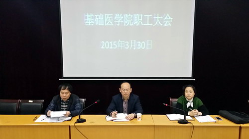 车向新院长首先肯定了2014年学院各项工作取得的各项成绩,并对yl23455永利集团今年的各项工作做了详细的安排和部署,车院长强调了2015年学院的三个重点工作:一是做好临床本科专业论证相关准备工作;二是配合临床医学院做好临床专业硕士点的申报工作;三是加强教学、科研成果的申报工作。他要求全体教职工要以这三个重点工作为本学年工作的核心,高度重视,提高执行力,加强创新意识,圆满完成2015年学院的各项工作。