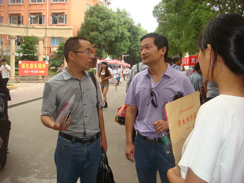 9月4日是我校新生报到的第一天,yl23455永利集团迎新工作有条不紊的进行,大批新生带着期待的神色,从五湖四海而来。学院党委书记余朝阳到报到现场检查指导迎新工作,慰问在场的工作人员。