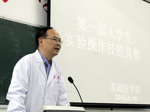 5月10日,实验操作竞赛正式拉开帷幕,车向新院长、余朝阳书记、郑美蓉副院长、汪鑫副院长参加了开幕式。医学基础实验中心钱隽主任主持开幕式,车向新院长做了简短的讲话,阐明了此次实验操作竞赛的意义,鼓励同学赛出好成绩。