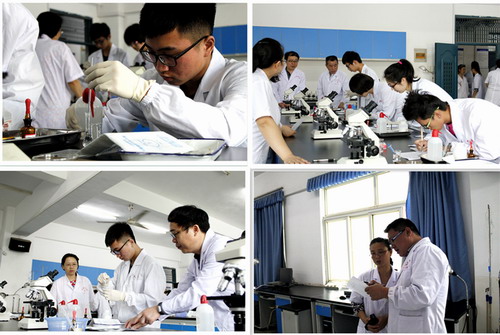 实验操作决赛分为四组进行,每位学生独立操作,评委进行打分、评议,在实验中心全体实验人员的共同努力下,经过一天的紧张工作,实验操作竞赛顺利完成。