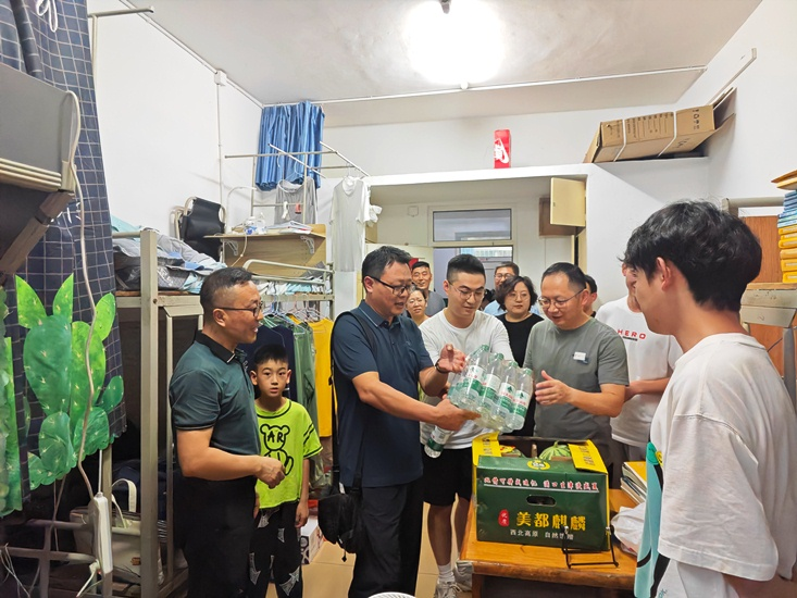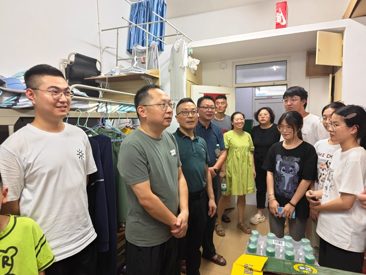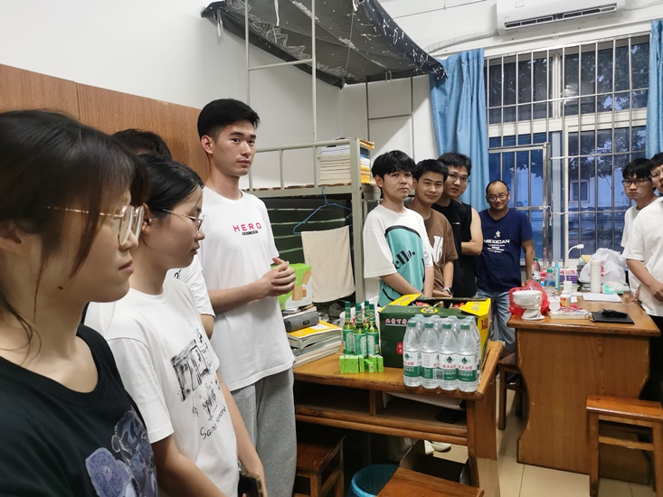7月25日晚,yl23455永利集团院长许晓源、党委书记张辉带队走访慰问暑假期间留校的师生,学院党委副书记刘频健,副院长熊建军、陈川参加了此次慰问活动,教务科、学生科、思政科负责人和辅导员陪同走访。