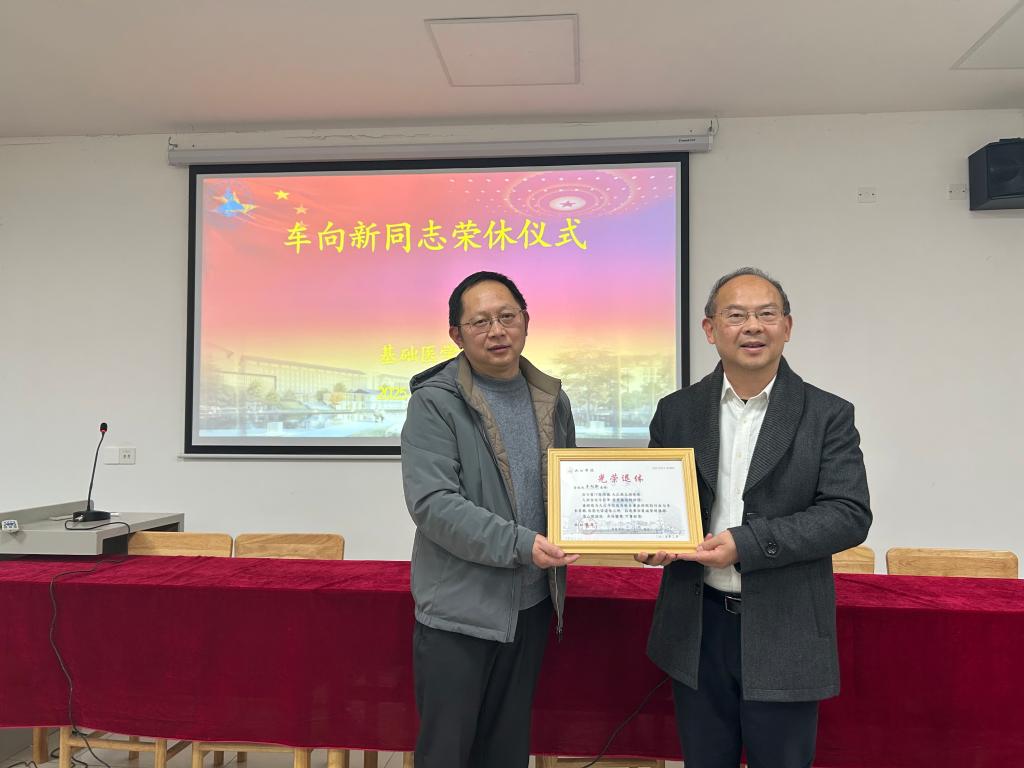 首先,许晓源代表学院向退休教师致以崇高的敬意和诚挚的祝福。他表示,车向新老师是学院发展的见证者和重要参与者,为学院的学科建设、教学科研和人才培养做出了不可磨灭的贡献,他的经验与智慧,如同灯塔一般,照亮并激励着一代又一代学子奋勇前行,衷心祝愿车向新老师退休后能够享受美好生活,开启更加精彩的人生新篇章。